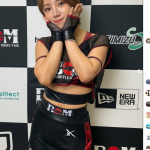 白と紺の競泳水着でポーズをとる大川(『なるなるーむ❤︎大川成美』YouTubeチャンネル)