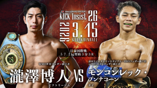 メインイベント(第14試合)では、WMO世界フェザー級王者・瀧澤博人(ビクトリージム)が、タイ・ラジャダムナンスタジアムRWSフェザー級7位のモンコンレック・プンナコーン(タイ)と57.2kg契約で対戦する。瀧澤は昨年11月の後楽園大会でWMO世界フェザー級王座を獲得。今回はラジャダムナン現役ランカーを迎え撃つ国際戦となる。