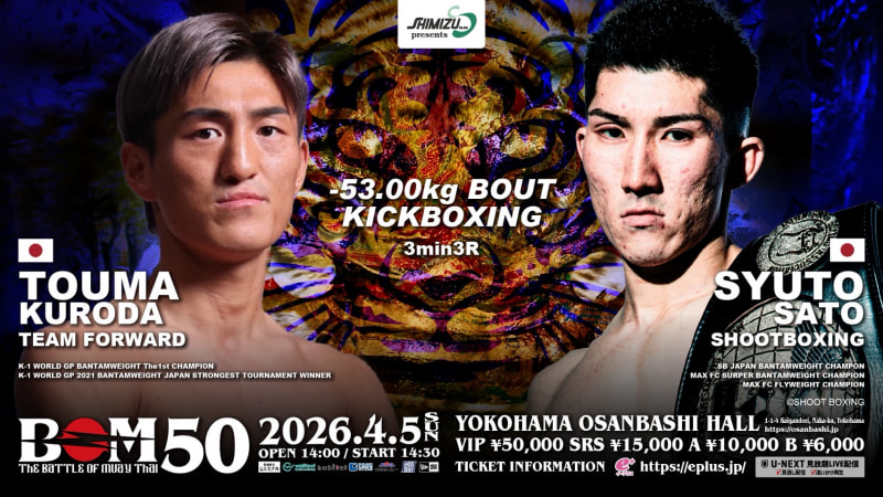 53.0kg契約のキックボクシングルールで対戦する黒田斗真(左)と佐藤執斗(右)