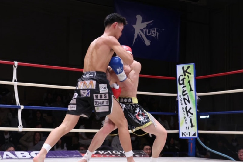 石田(左)がパンチを繰り出す