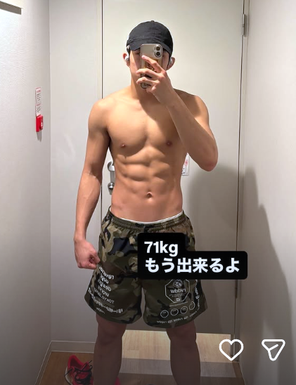 ミックス戦10日前の秋元の割れすぎた腹筋(本人のインスタグラムストーリーより)