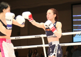 - 宮原(右)は、プロデビュー戦でKO勝ち(RISE=23年4月の金子久美子戦)