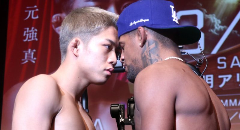 秋元(左)とミックスは額を付け合う危険フェイスオフに