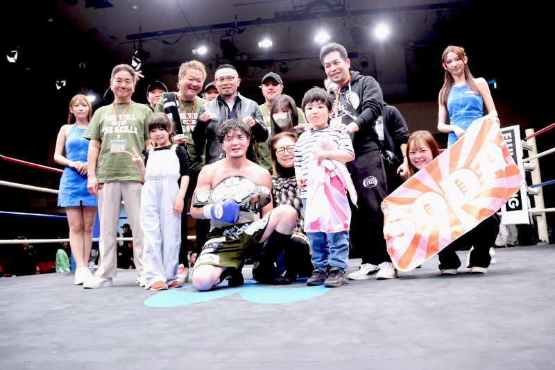 左右田が家族、チーム関係者と記念撮影