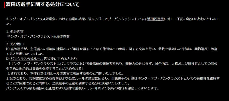 パンクラスの王座剥奪リリース(パンクラス公式サイトより)
