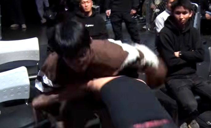 濱田がよーでぃーのタックルを受ける(「公式ブレイキングダウンYouTubeチャンネル」)
