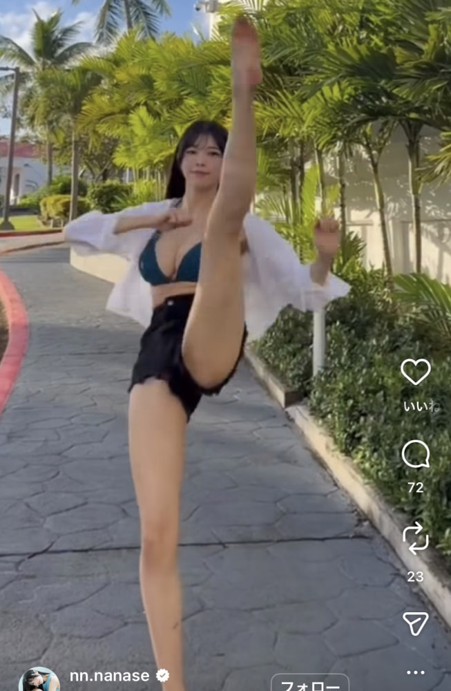 すらっとした長い脚でハイキック!(@nn.nanase)