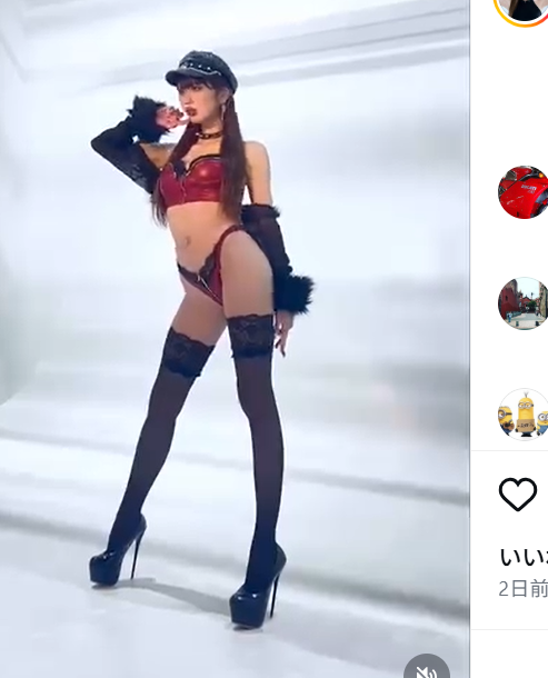 美しく長い脚が際立つボンテージ風コスチューム姿の央川(@kako.717)