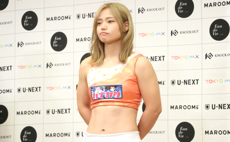 RUIは計量で割れた腹筋を見せた