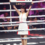 U-NEXT BOXING.5前日計量に登場した池永百合(右)らラウンドガール(Photo=Naoki Fukuda)