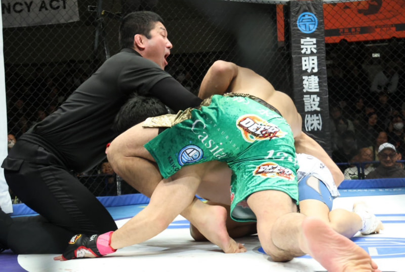 レフェリーが割って入り、TKO勝利を収めた