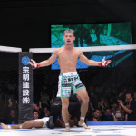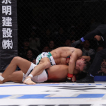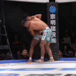 牛久(左)と水野がフェザー級暫定王座決定戦で激突