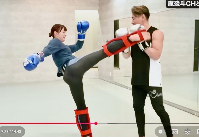 角田のハイキック!(YouTube 「角田夏実の部屋」より)