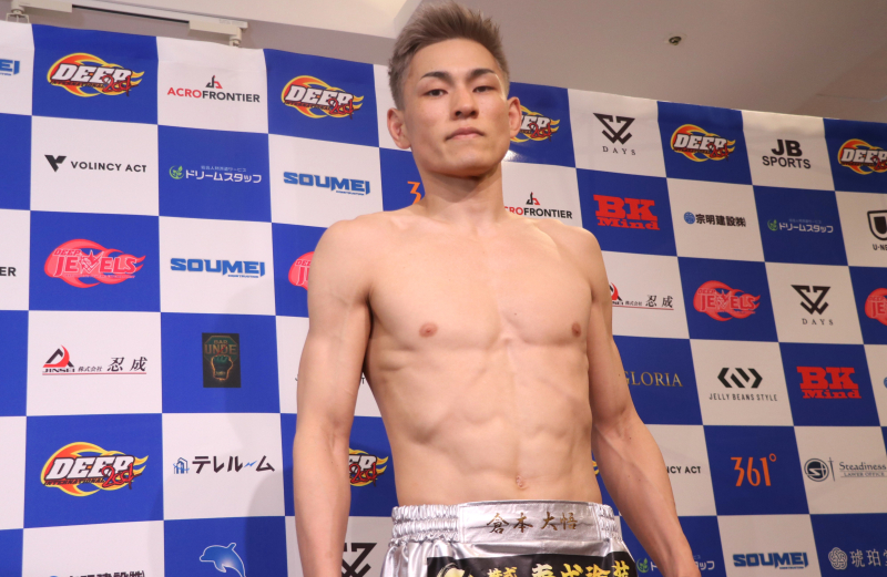 割れた腹筋を見せた倉本