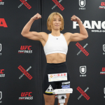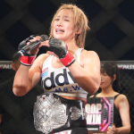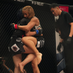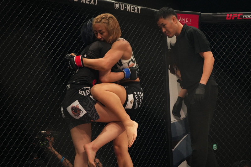 杉山のヒザ蹴りがボディへ