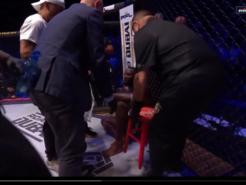 ケージにもたれかかるファビアン(中央)(@PFLMMA)
