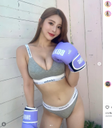 - スポブラ姿でボクシンググローブを着用するKYON(@cjd_kyon)