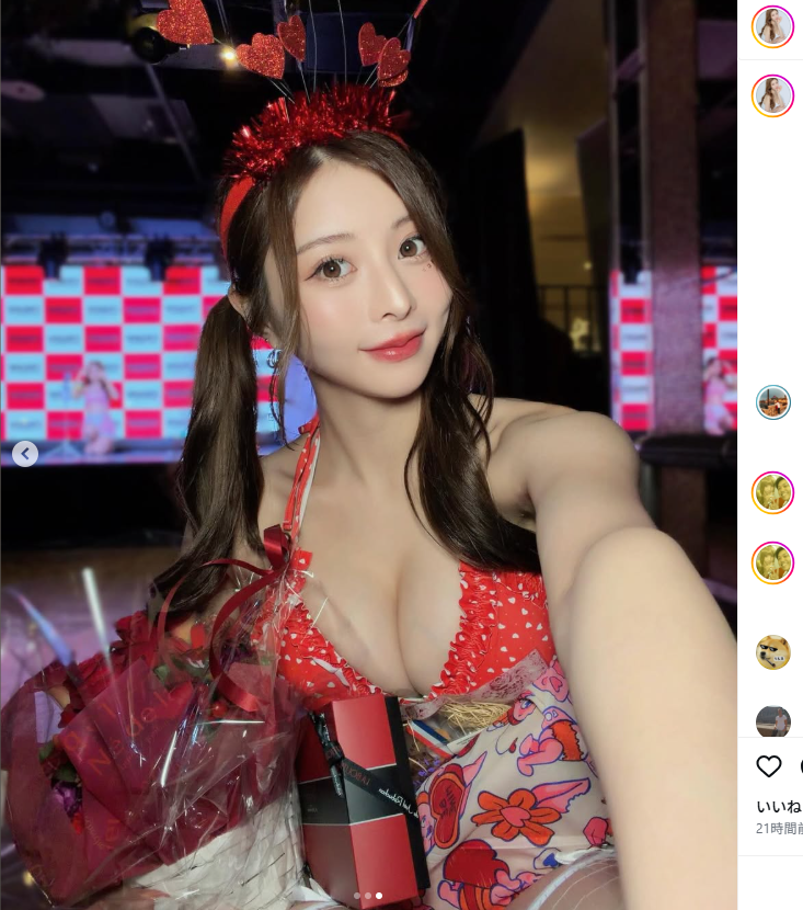 赤いビキニ姿でファンを魅了したKYON(@cjd_kyon)