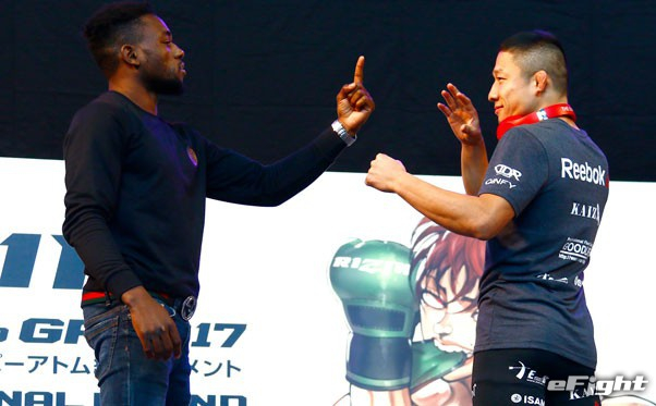 2017年、堀口とケイプの前日計量。ケイプは堀口を挑発