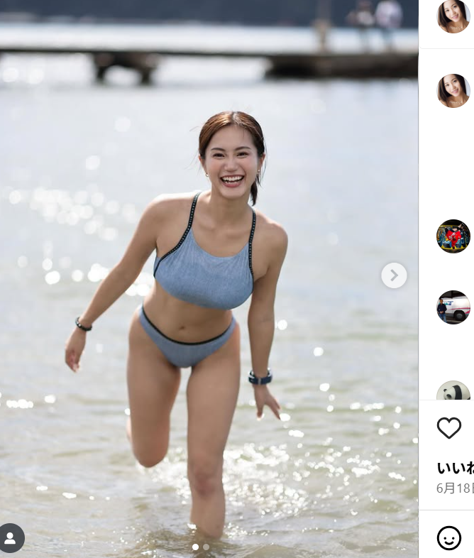 ビキニ姿の植原(@yukina_uehara)