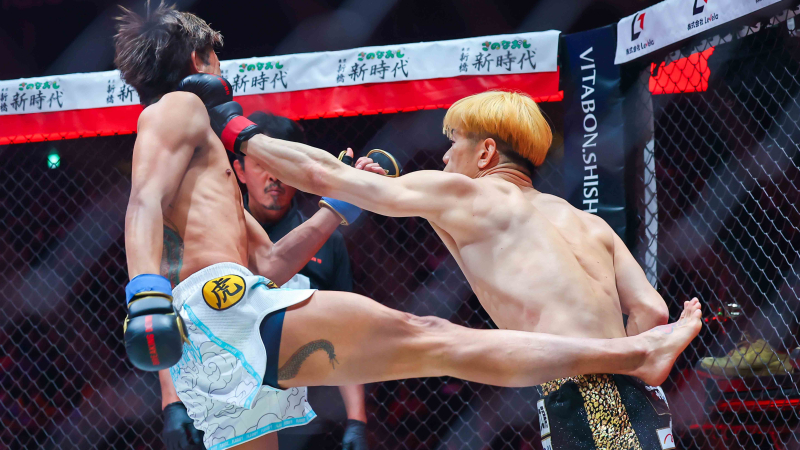 井原のパンチが芦澤の顔面を直撃