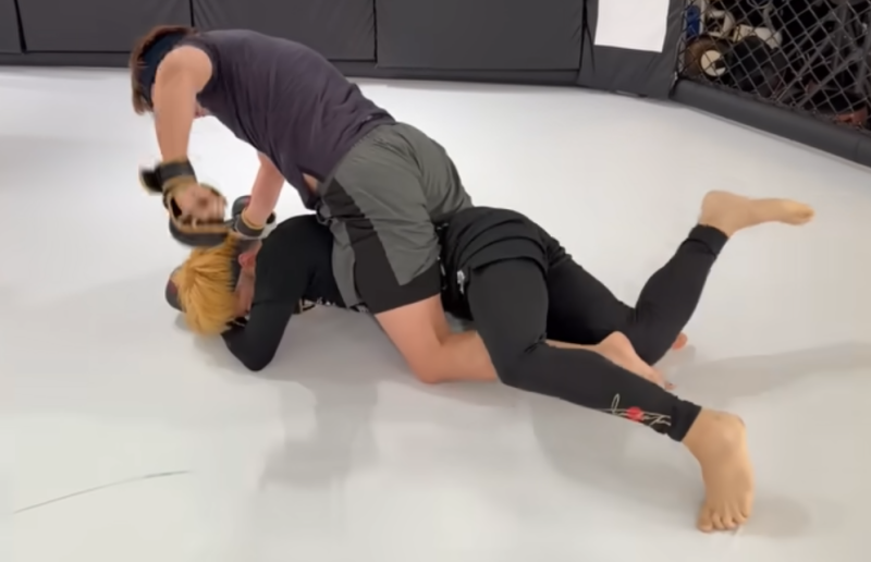 朝倉がバックマウントからパウンド(朝倉未来YouTubeより)