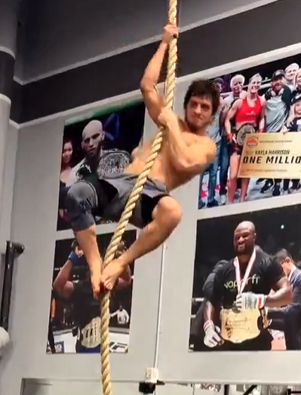 降りて来る時は足から。ドヤ顔を見せた(@movsar_evloev_94)
