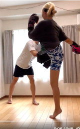 - 揺れる太ももでミット蹴りを見せる霜月めあ(@melomea030)