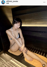 【フォト】割れた腹筋でサウナ、ビキニ姿も(写真はクリックで拡大)