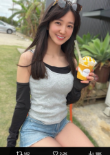 - 佐藤がむっちり太腿で宮古島の浜辺でピース!(@satoakarii)