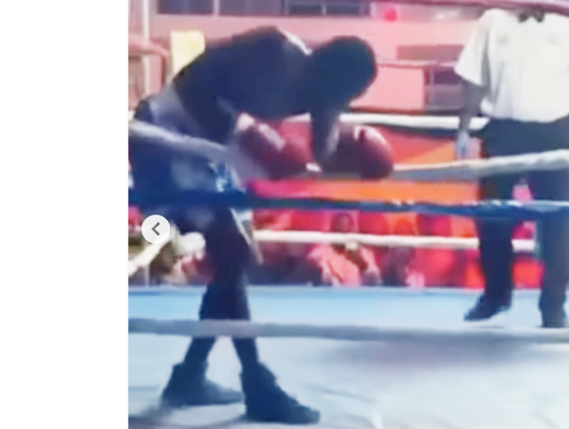 ロープ外に上半身を出し戦意喪失@notjustboxingより