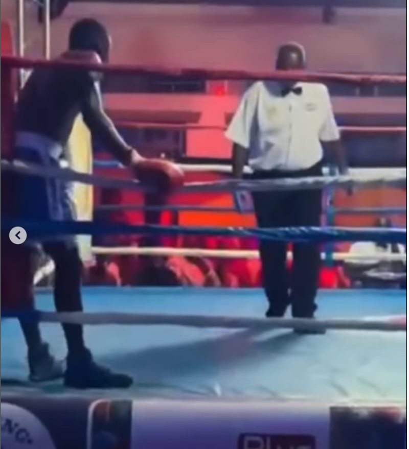 ロープに両手を置き、闘える状態ではなさそうだ@notjustboxingより
