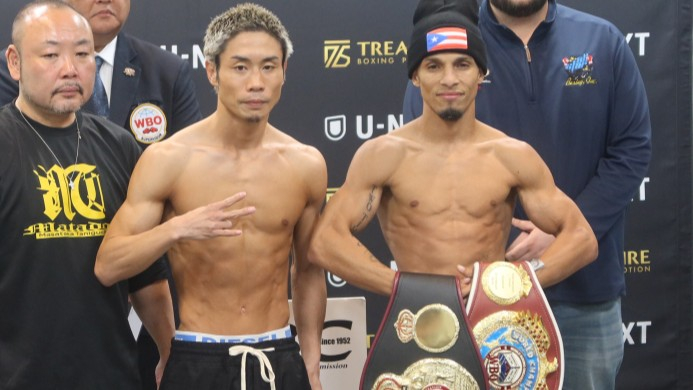 王者レネ・サンティアゴ(右)に谷口将隆(左)が挑戦する