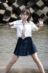 - 17歳、制服姿で刀を持つ安井 ©️栗山秀作/週刊プレイボーイ
