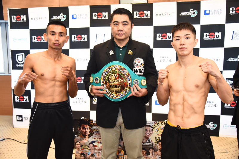 WBCムエタイ世界フライ級タイトルマッチで対戦する竜哉・エイワスポーツジム(右)とデッピチャイ・ナヴィアンダマン(左)