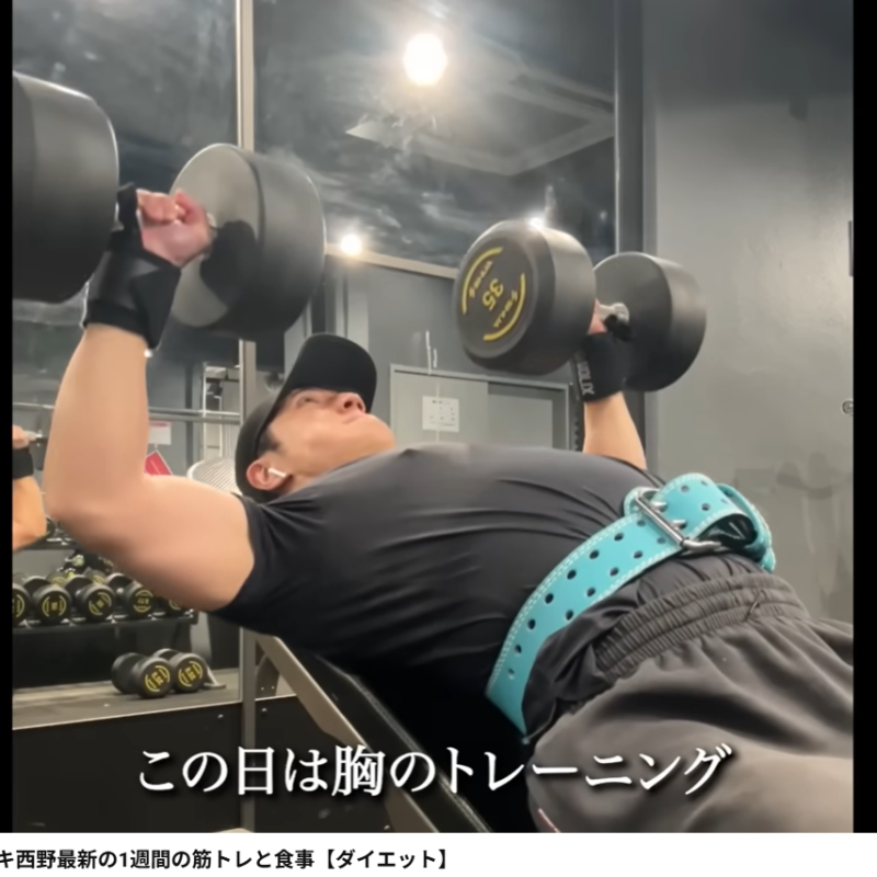 インクラインダンベルプレスする西野(@korochiki_nishino)