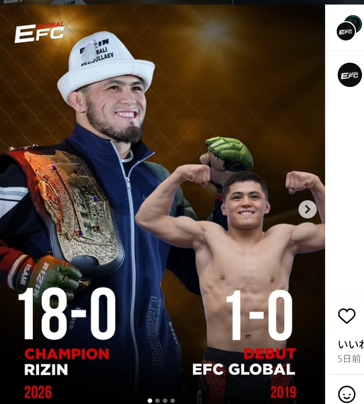 デビュー当時のシェイドゥラエフ(右)の肉体(@efc_global)