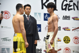 【K-1】大久保琉唯、バキバキ腹筋で計量パス!”KO負け無し”新美貴士に「見えない攻撃やスピードで倒す」