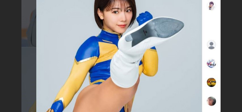 元銀行員の”戦隊”ヒロイン、ムエタイ大会BOMガール黒衣装で腹筋が!(@naru_coco)