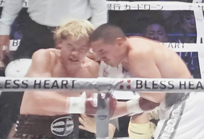左ボディがヒットした瞬間(会場の大型ビジョン)
