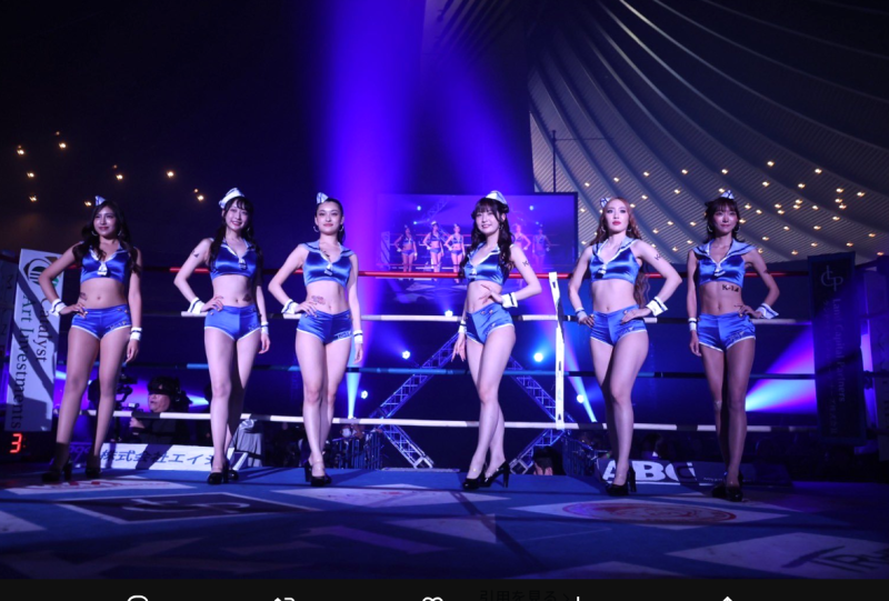 腹筋が目立つ犬飼のラウンドガール姿(右端)(C)K-1、@po_me_ruuuuuu