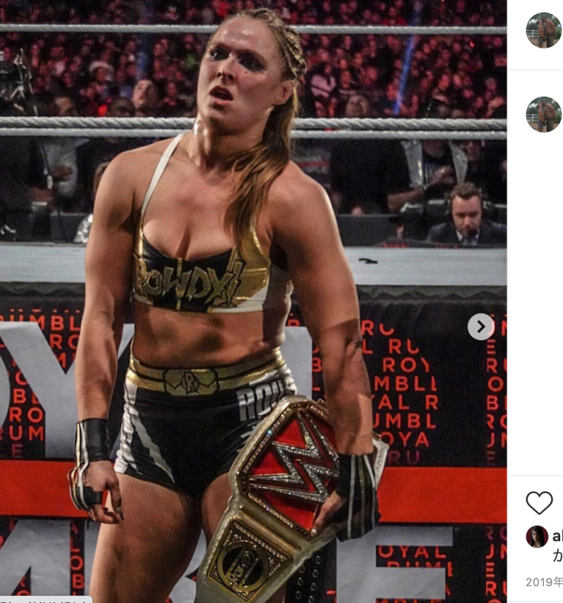 UFCベルトを肩にかけるラウジー@rondarouseyより we1