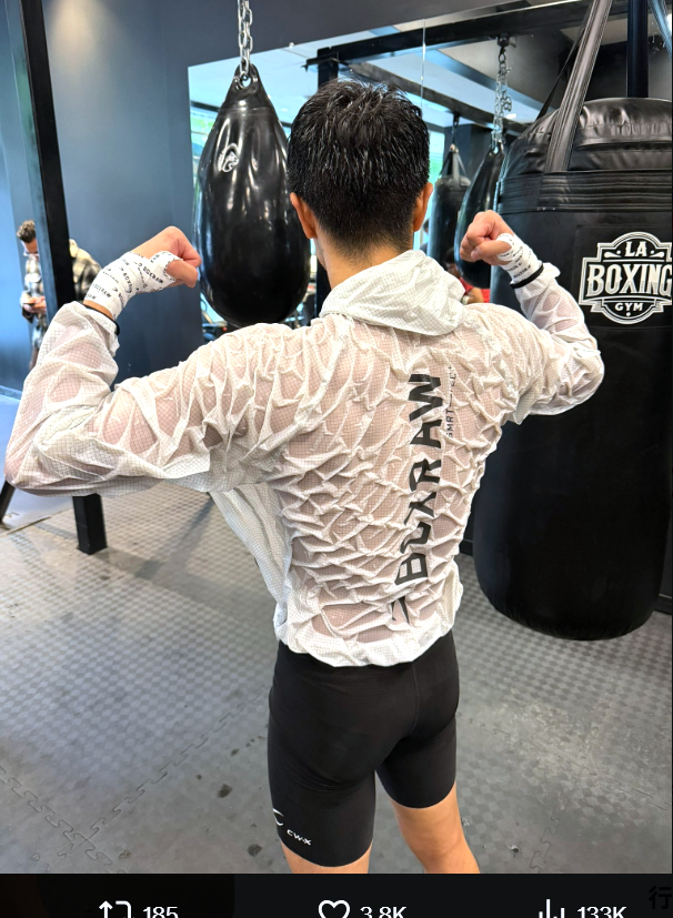 中谷の逆三角形の背中!汗だくでウェアが肌に張り付き網状の模様に(@BoxerJunto)