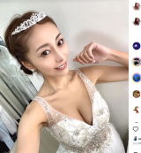- 熊切の胸元大きく開いたウエディングドレス姿(@asami_kumakiri)