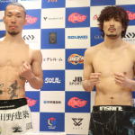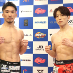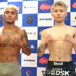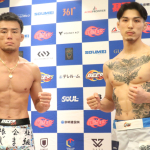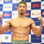 安井は強靭ボディで計量パスし、明日の決戦を好調アピール