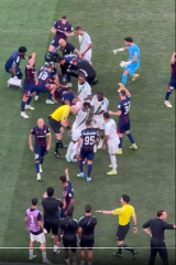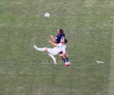 サッカー試合でまさかのハイキックKO!顔面直撃で騒然、両軍入り乱れる事態に