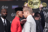4月29日(水・祝)東京・有明アリーナにて開催される『ONE SAMURAI 1』の公開練習&記者会見が、24日(金)都内にて行われ、メインイベント[フライ級キックボクシング暫定世界王座戦]でロッタン・ジットムアンノン(タイ)と対戦する武尊(team VASILEUS)が、KO勝利を宣言した。会見後には、キレとパワーのあるミット打ちも公開した。