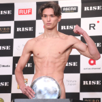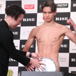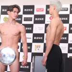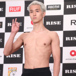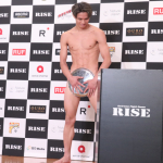バスローブ姿で会見に出席した奥山
