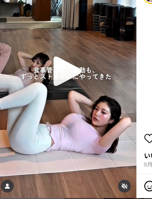 ピンクのTシャツに白いレギンスのトレーニング姿の阿部(@i.am_natsuki_)