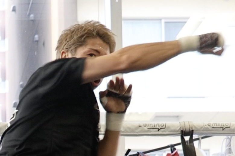 シャドー時に見せたワイヤーのような前腕の筋肉(4月20日の公開練習時)